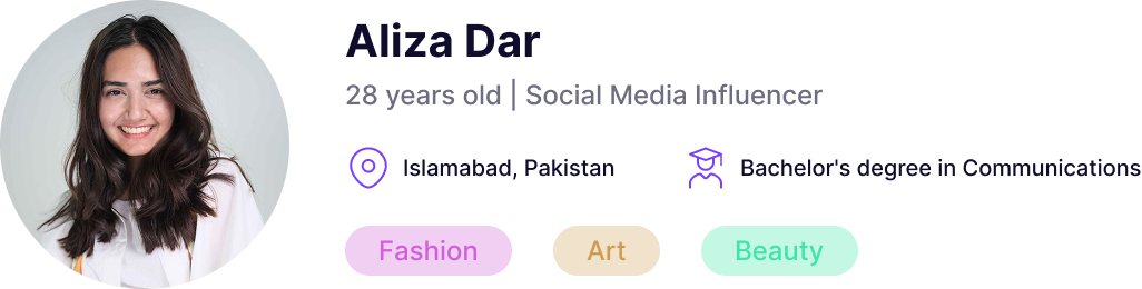 Aliza is a successful social media influencer with a strong presence on platforms like Instagram, YouTube, and TikTok. She focuses on lifestyle, fashion, and beauty content, and has a dedicated following of young women who seek her recommendations and insights.