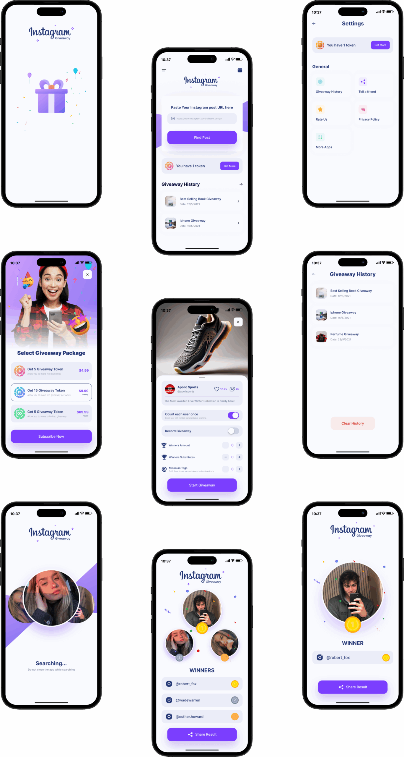Hosting Instagram giveaways often involves manually selecting winners, which can be time-consuming and prone to bias. Existing solutions may lack user-friendly interfaces or essential features, leading to a need for an efficient and accessible giveaway picker app.